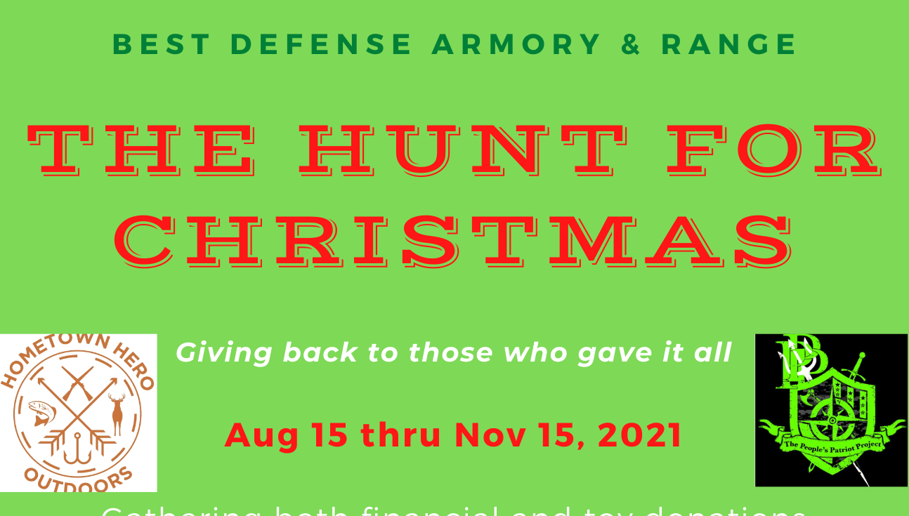 A Christmas toy drive for military families and those in need in Forest Lake area. Mike and Erik, owners of Best Defense Armory & Range are very passionate about the holiday season. We want to be able to make sure that no kid wakes up without a present under the tree. As a business we are looking to fill our classroom completely full of toy donations as well as raise money for two of our most supported non‐profit organizations Hometown Hero Outdoors and The People’s Patriot Project.Images